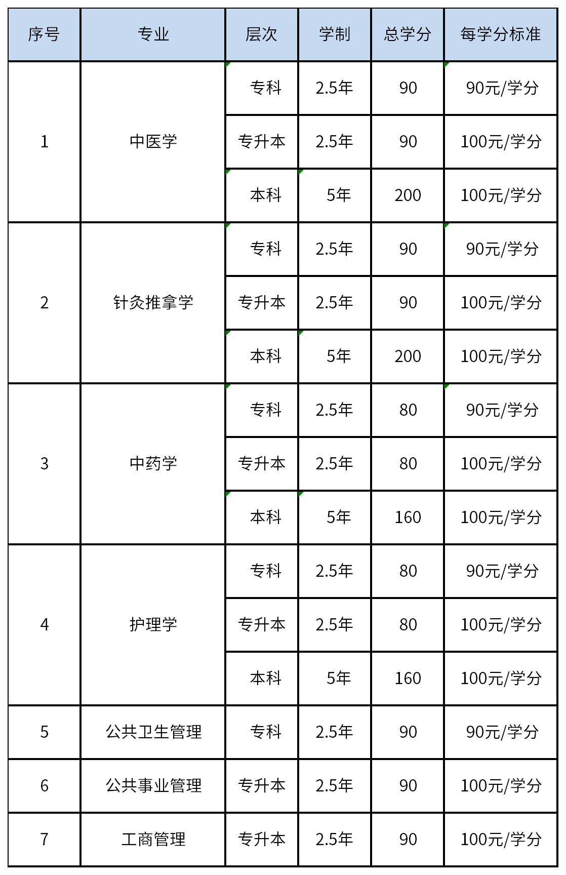 1.中医学专业、针灸推拿学专业