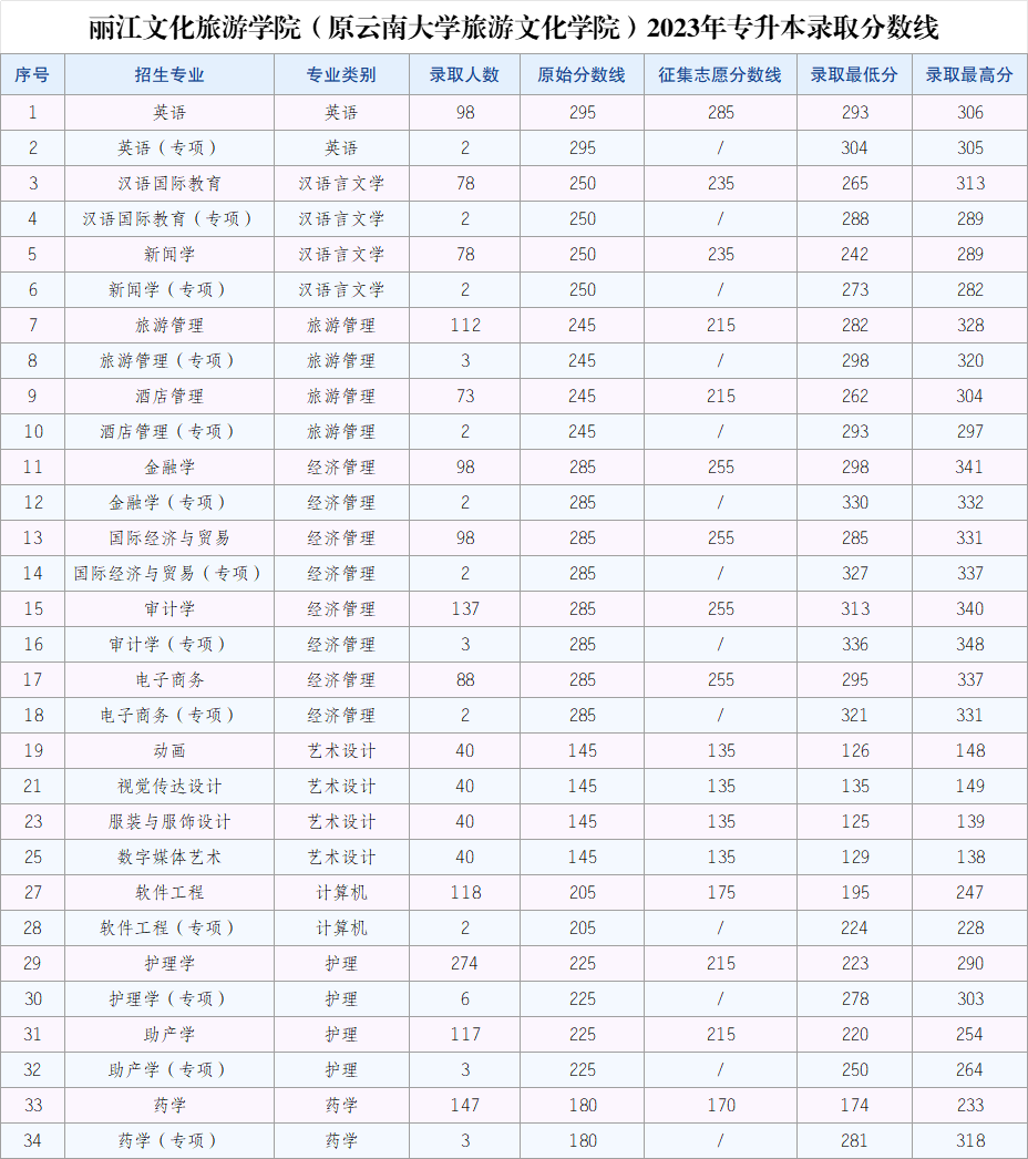 【导读】有同学在找2023年丽江文化旅游学院专升本录取分数线,云南专升本录取分数线已经准备好了相关内容,希望对大家有所帮助!