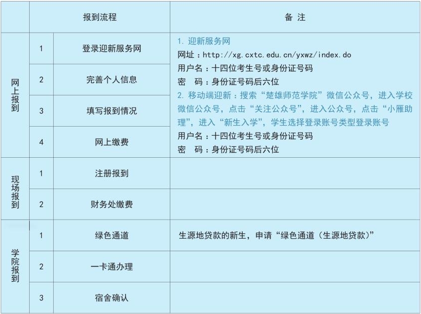 6.宿舍确认∶各学院负责教师提前在迎新系统内分配好宿舍,新生报到后找班主任领取宿舍钥匙。
