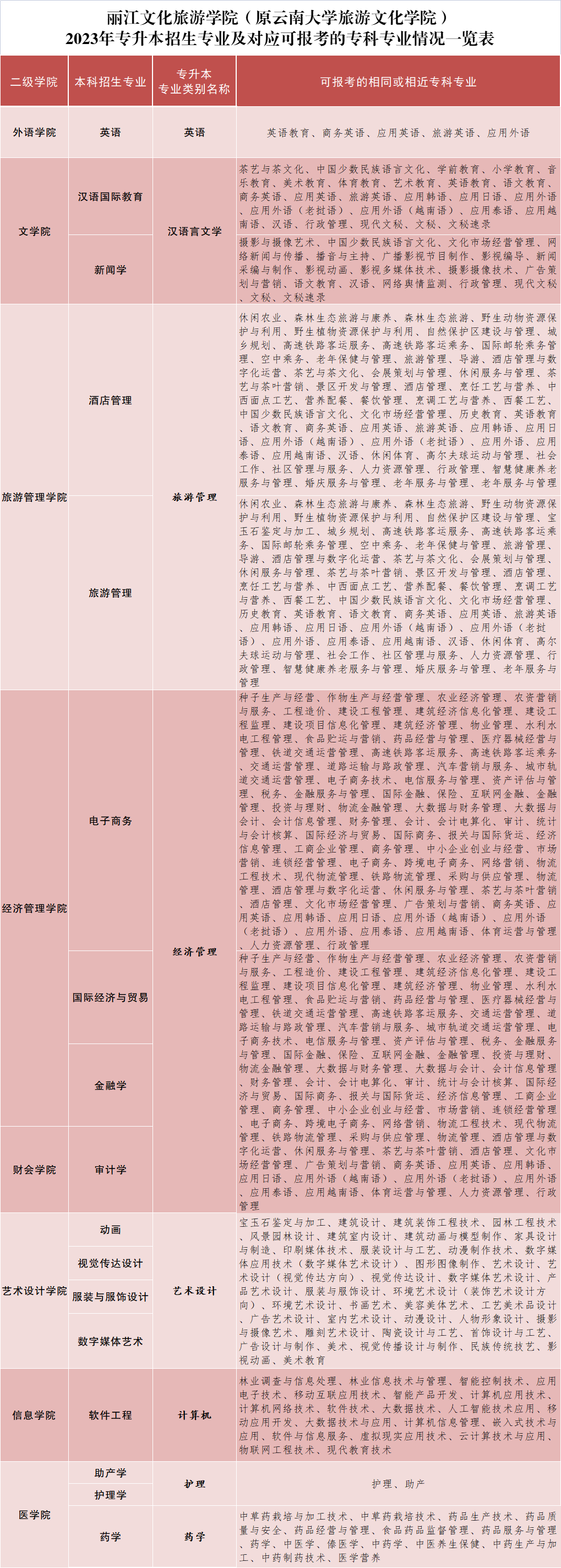 【导语】报考丽江文化旅游学院专升本的考生们,关于2023年的招生简章现在已经公布,想要报考的相关考生可以仔细了解一下。