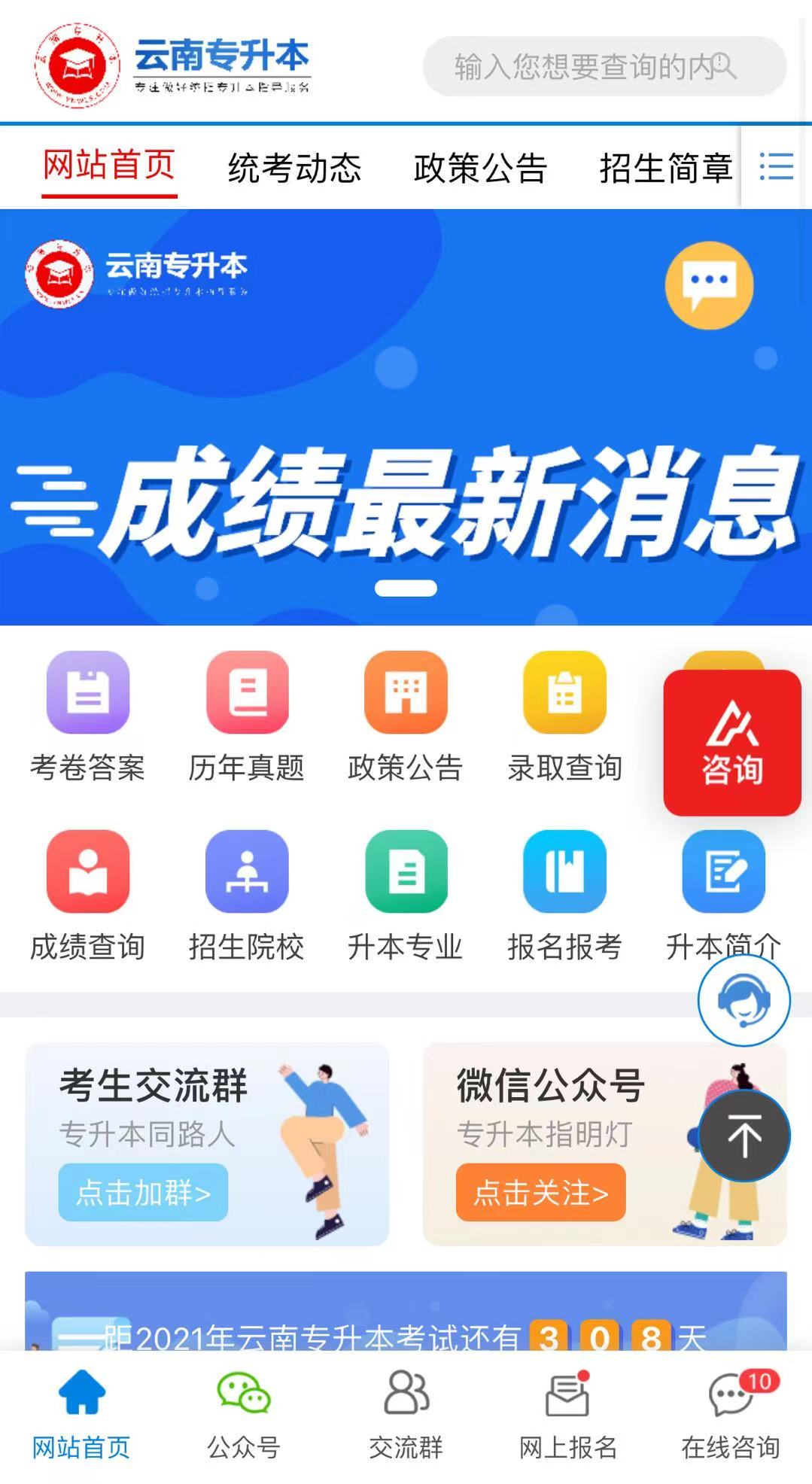 为了更好的服务广大学员了解统招专升本的相关政策与资讯,云南专升本网与2021年5月初,进行网站功能全面升级与版面调整。改版后的网站操作界面更加方便,让学员更加快捷的找到想要查询的内容,