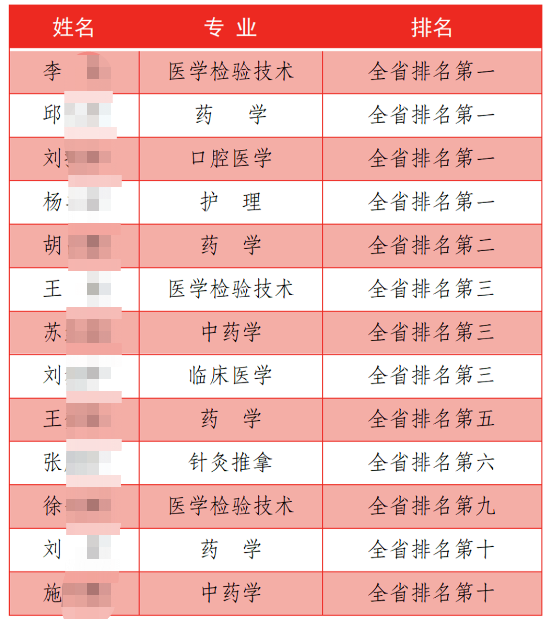 辛勤耕耘出硕果,楚医学子创佳绩!近日,2023年云南省普通高等教育专升本考试成绩公布,楚医学子捷报频传。我校医学检验技术专业考生李*、药学专业邱**、口腔医学专业刘**、护理专业杨**同学取得相应专业全省第一名,胡**等同学成绩位列全省前10名。