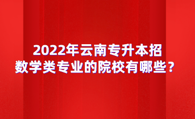 【导读】许多同学在问,2022年云南专升本招数学类专业的院校有哪些?这边已经为大家把相关内容整理出来了,一起看看吧!