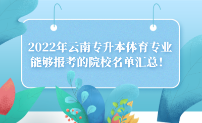 【导读】体育专业的考生注意啦!许多考生在问2022年云南专升本体育专业都能报考的院校有哪些?这边已经为大家把相关内容整理出来了,一起看看吧!