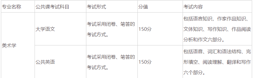 云南省美术学专业公共课考试内容表