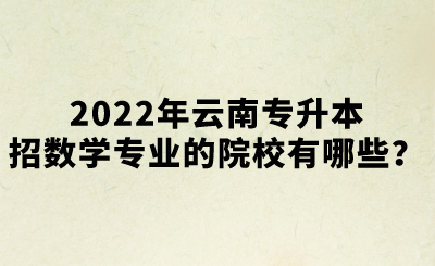 2022年云南专升本招数学专业的院校有云南师范大学、昭通学院、普洱学院、云南民族大学玉溪师范学院、楚雄师范学院、云南经济管理学院、云南大学滇池学院、滇西科技师范学院。