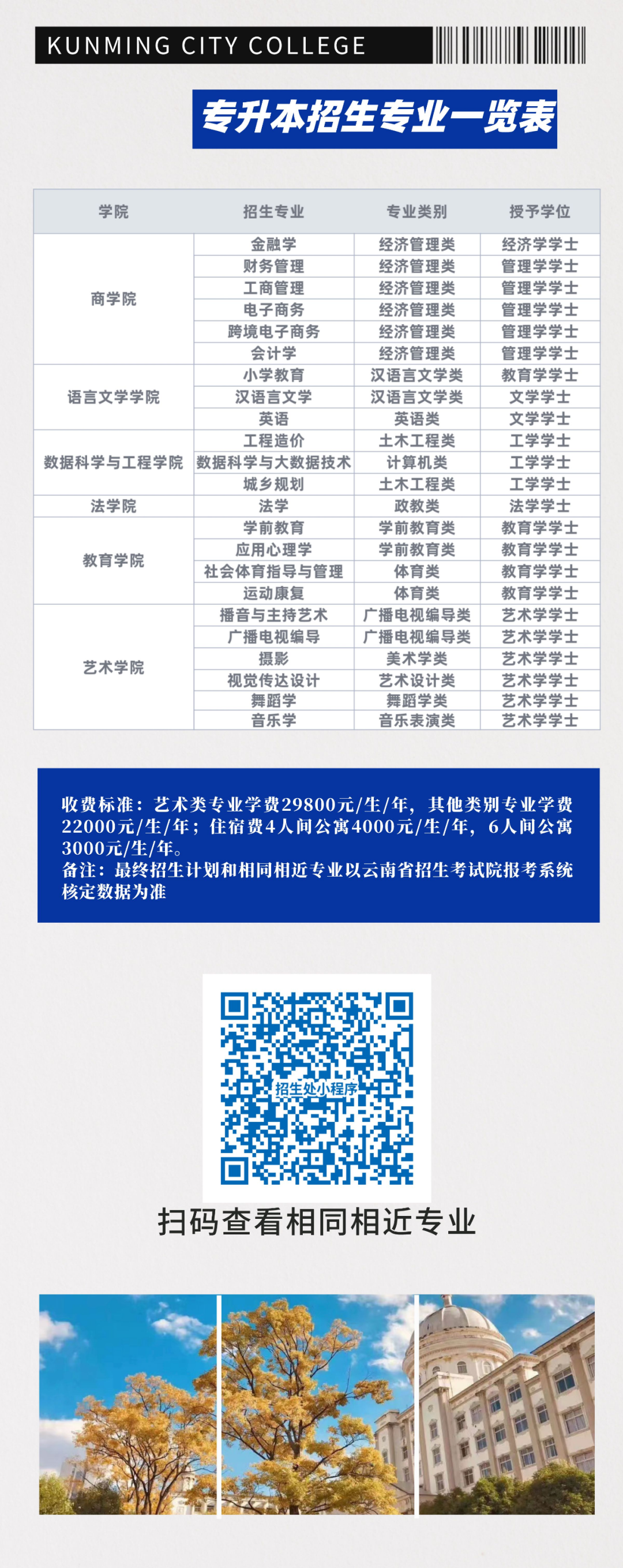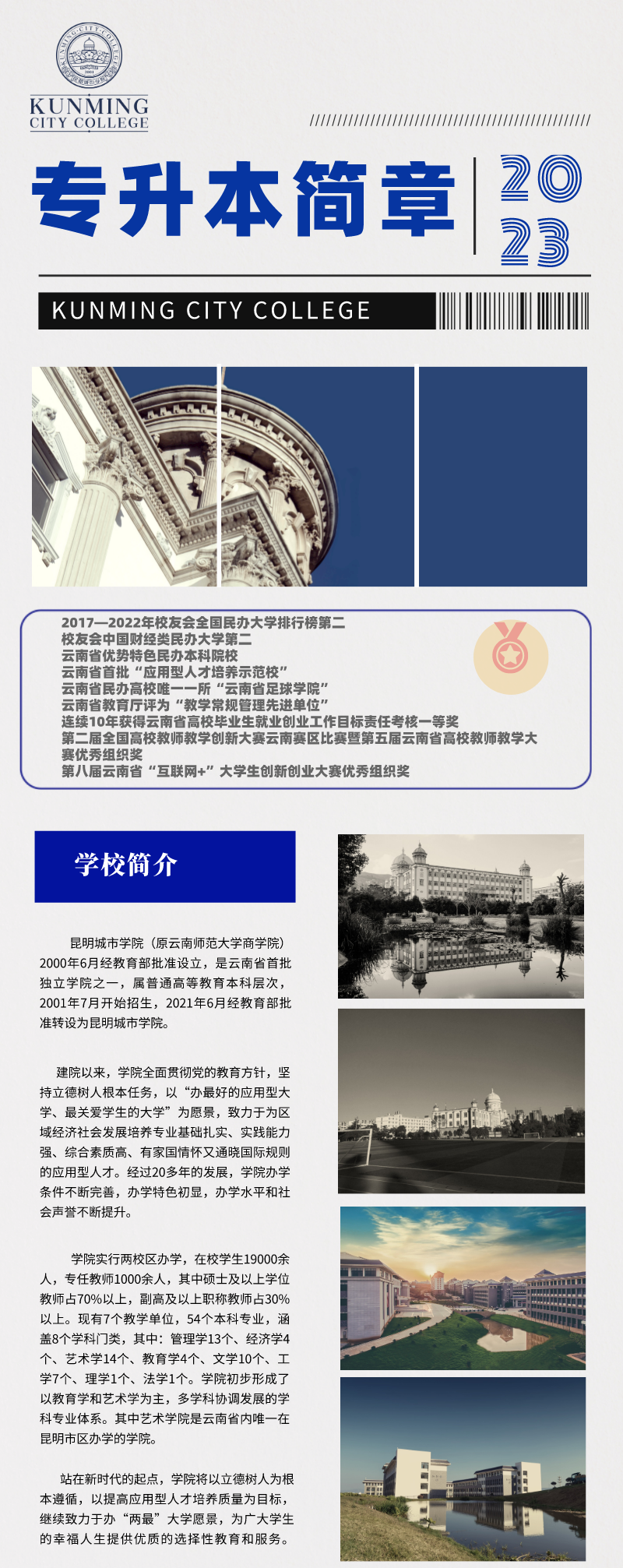 【导语】报考昆明城市学院专升本的考生们,关于2023年的招生简章现在已经公布,想要报考的相关考生可以仔细了解一下。