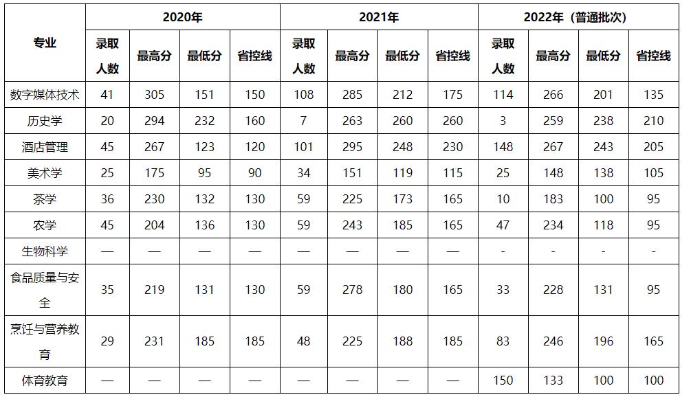 普洱学院2020、2021、2022年专升本录取情况统计表