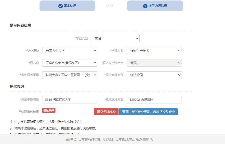 (2)报考类型为退役军人、西部志愿者、技能大赛(不含“互联网+”)、技能大赛“互联网+”、南亚东南亚语免试、公共英语免试的考生需到报名点提交材料并进行现场审核,然后等待报名点、招生院校、职成教处、高教处或学生工作部审核。