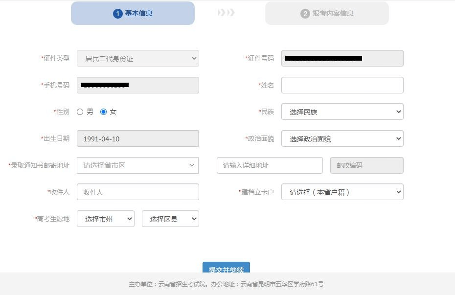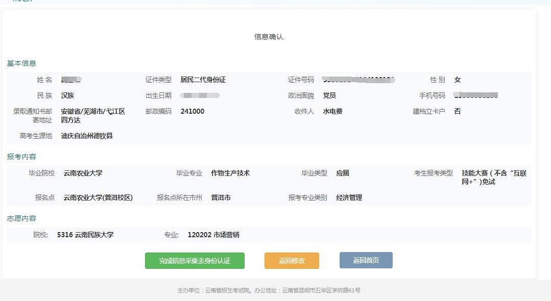 信息采集包括基本信息采集和报考内容采集,如图4、图5。填写完成后,