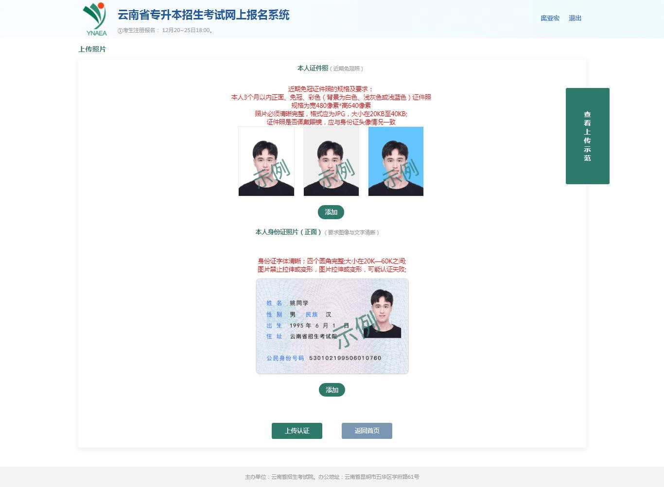 点击首页【去认证】或是信息页面中的【完成信息采集去身份认证】按钮,进入到上传认证页面,如图7。根据要求上传相应照片后,点击【上传认证】,