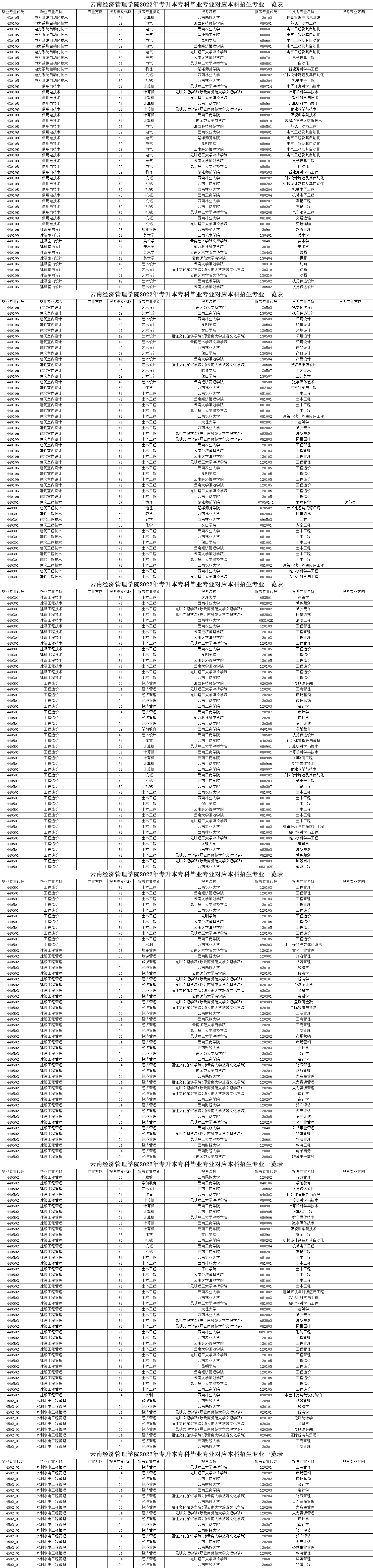 | 云南经济管理学院2022年专升本专科毕业专业对应本科招生专业一览表 | ||||||||