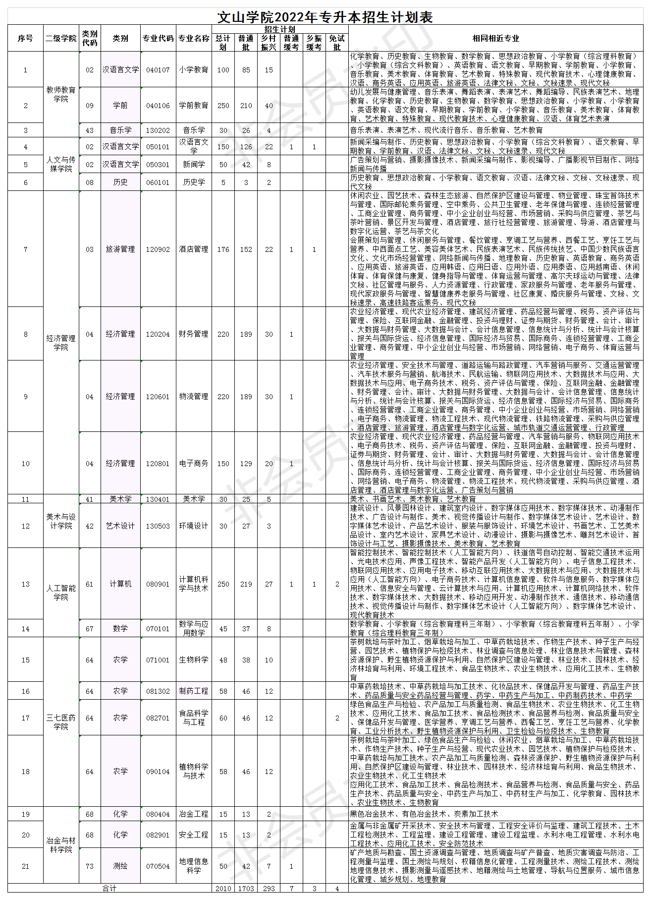 【导读】2022年文山学院专升本招生计划表已经公布,为了方便大家查询,文山专升本在这里把相关内容整理出来了,希望对同学们有所帮助!